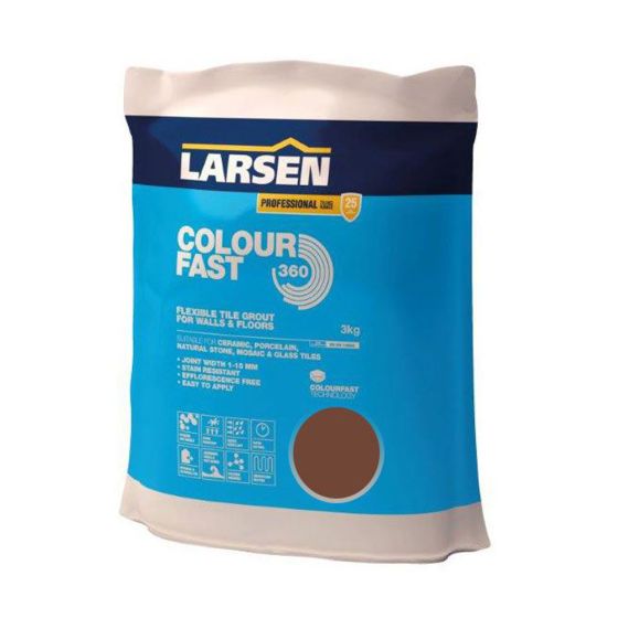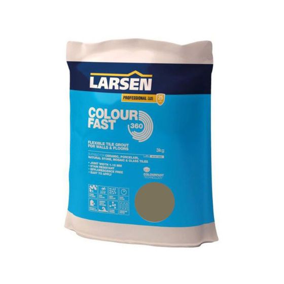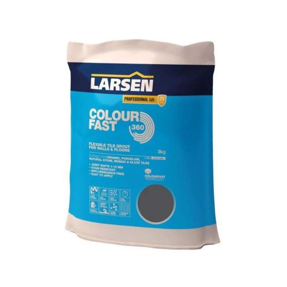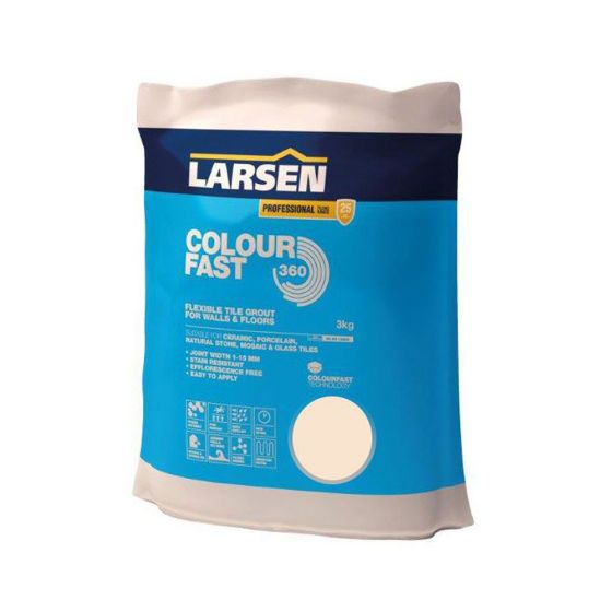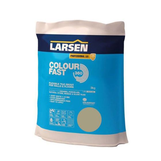 Larsen Professional Colourfast 360 is a specially formulated, flexible, rapid setting tile grout. This advanced formulation uses Colourfast Technology to ensure uniform joint colour, free from efflorescence. Professional Colourfast 360 is suitable for use as a flexible wall and floor grout. The fine texture provides a smooth, stain, mould and water resistant finish that is suitable for use on most tile types including glazed and unglazed ceramic, porcelain, natural stone and glass tiles.