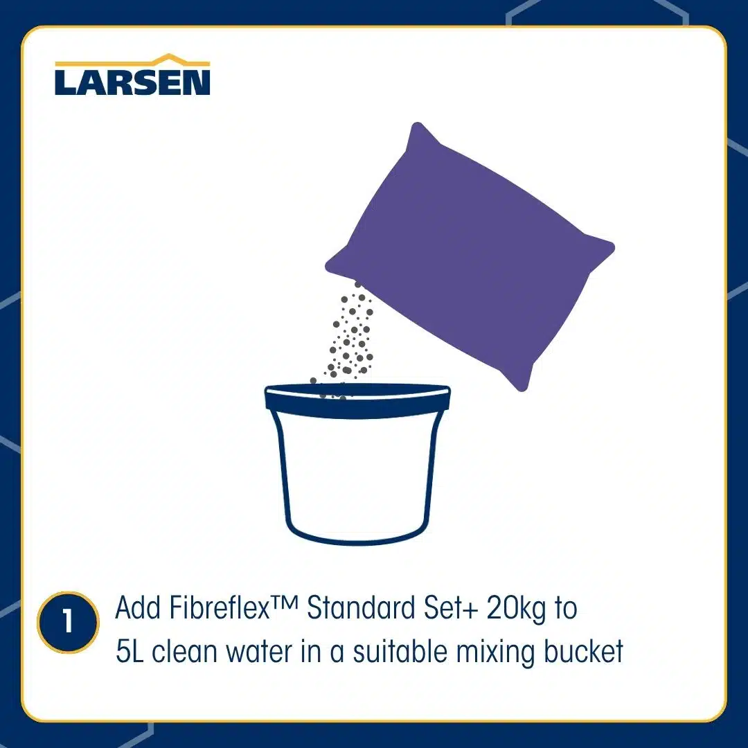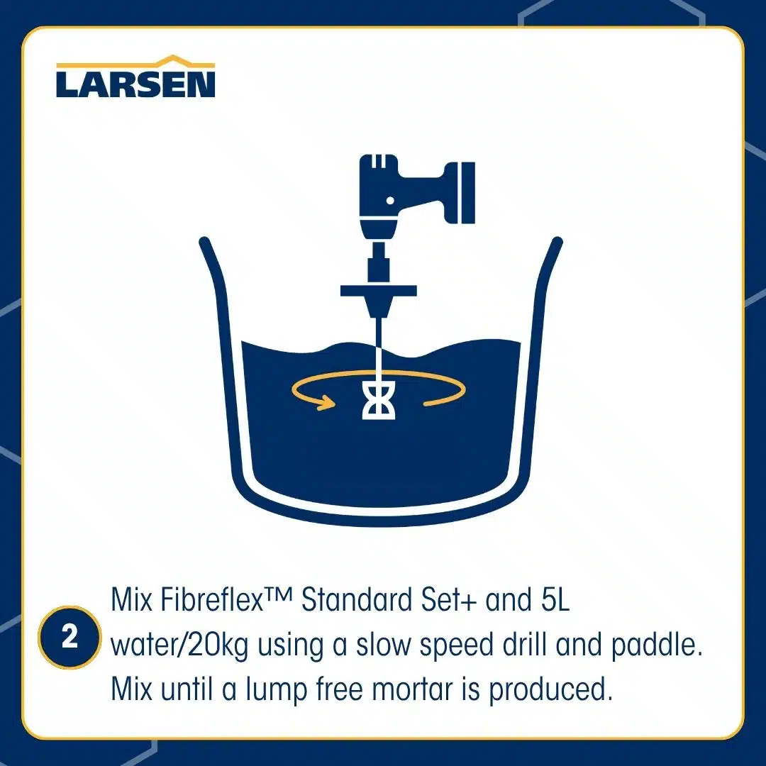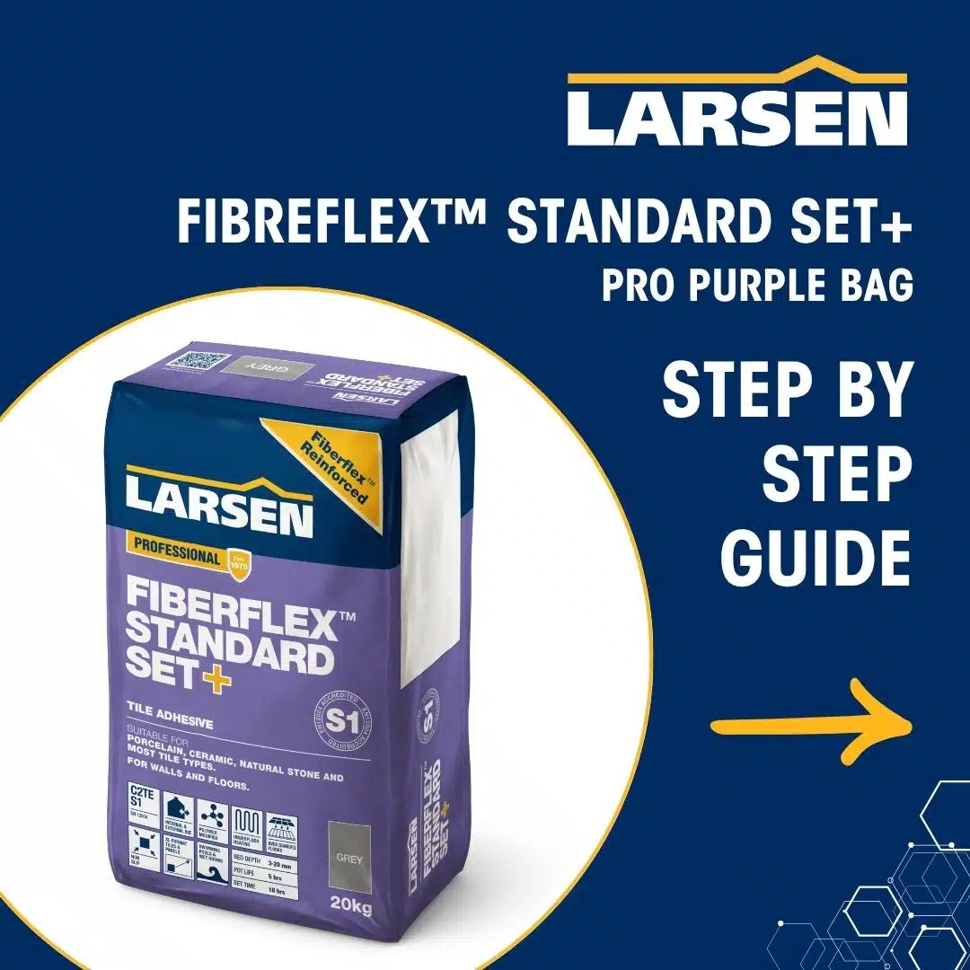 Larsen Professional Fibreflex™ Standard Set+ is a specially-formulated, fully flexible, S1 rated, non-slip, standard-setting, cement-based tile adhesive with extended open time.