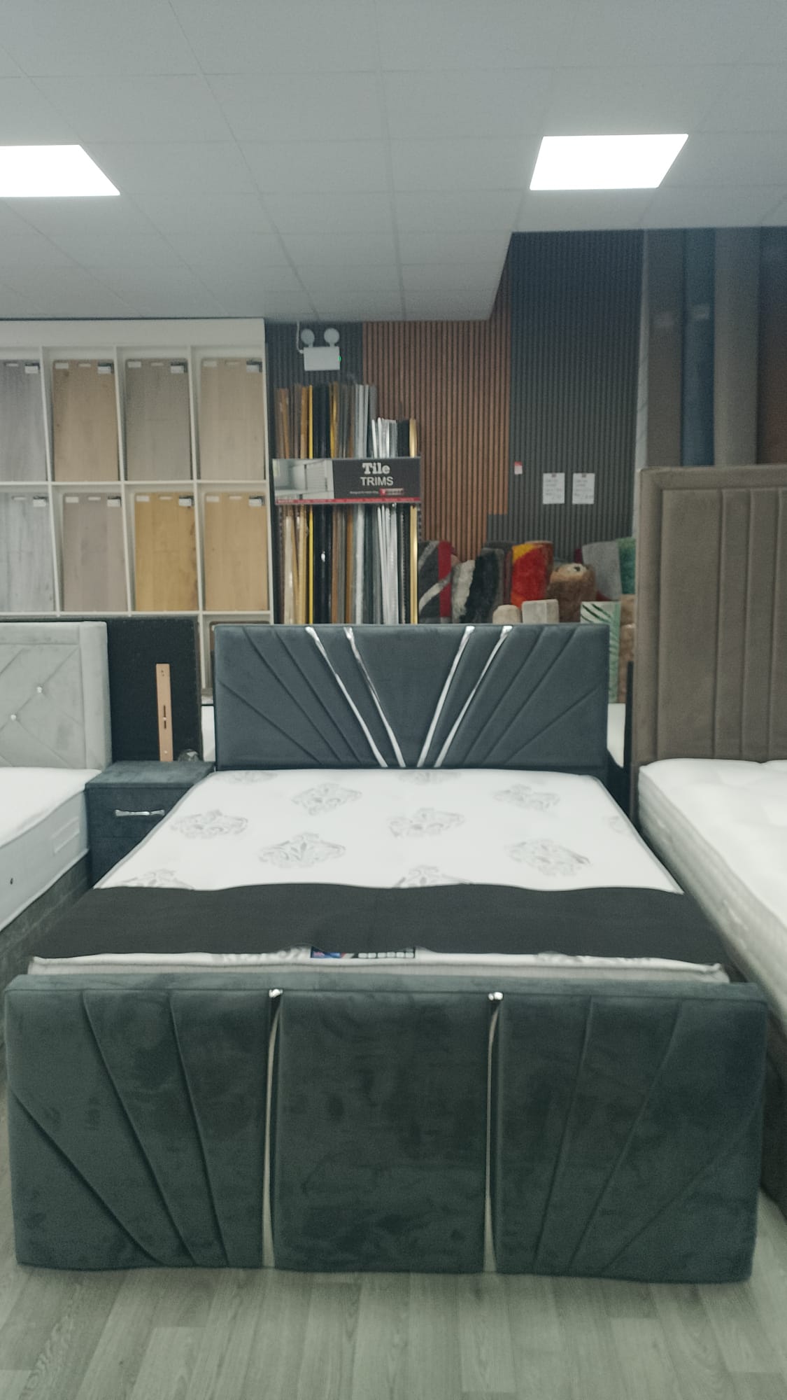 Upholstered in soft-touch fabric or velvet, the Sunrise Strip bed offers both comfort and style. The padded headboard provides a supportive backrest, making it perfect for relaxing, reading, or unwinding.