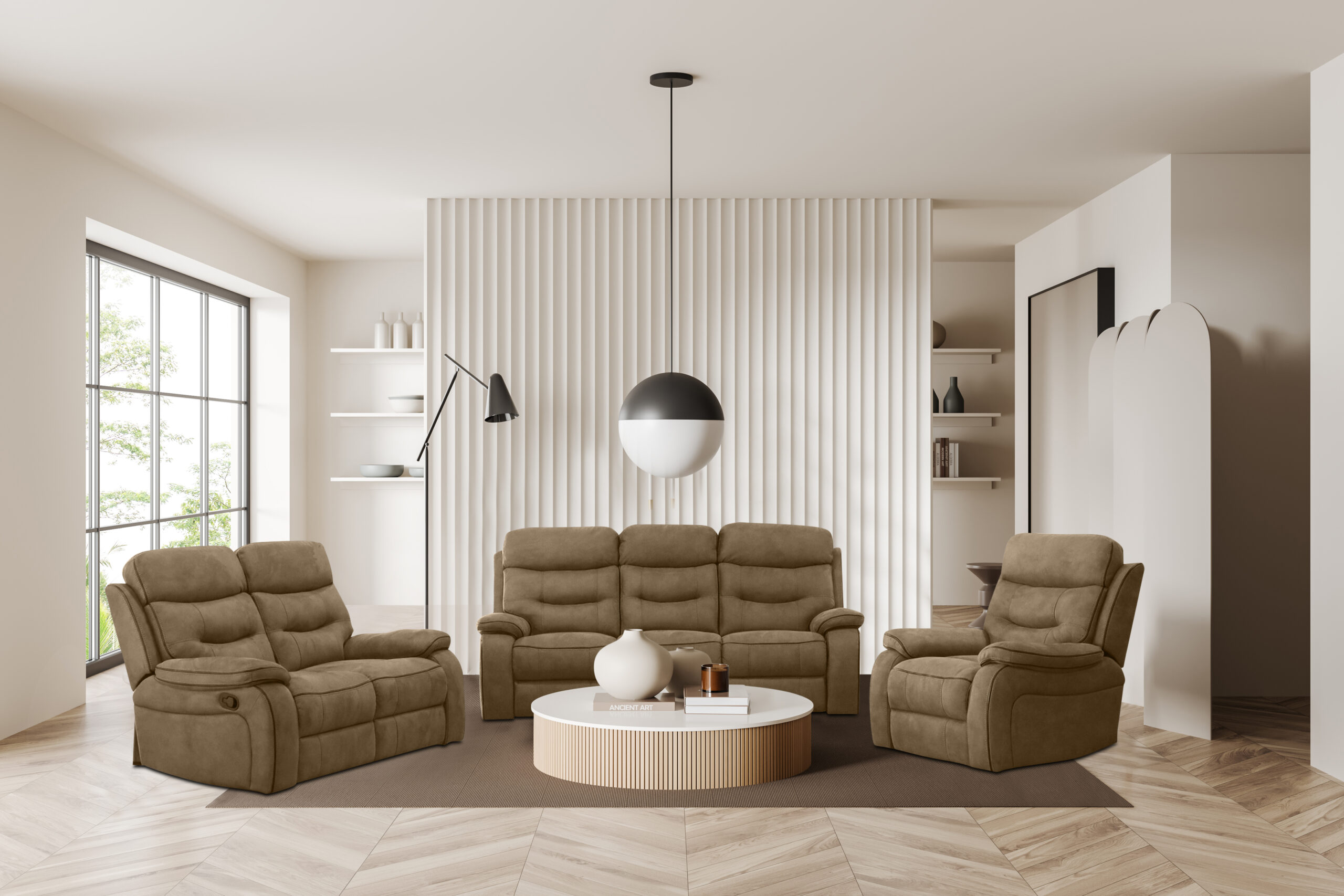 Padded seats featuring pocket springs topped with foam and fibre wrap offer superb support and a truly luxurious sit. Back cushions are perfectly filled with cosy fibre to provide excellent lumbar support. A manually operated recline function on both end seats facilitates the ultimate lounging experience.